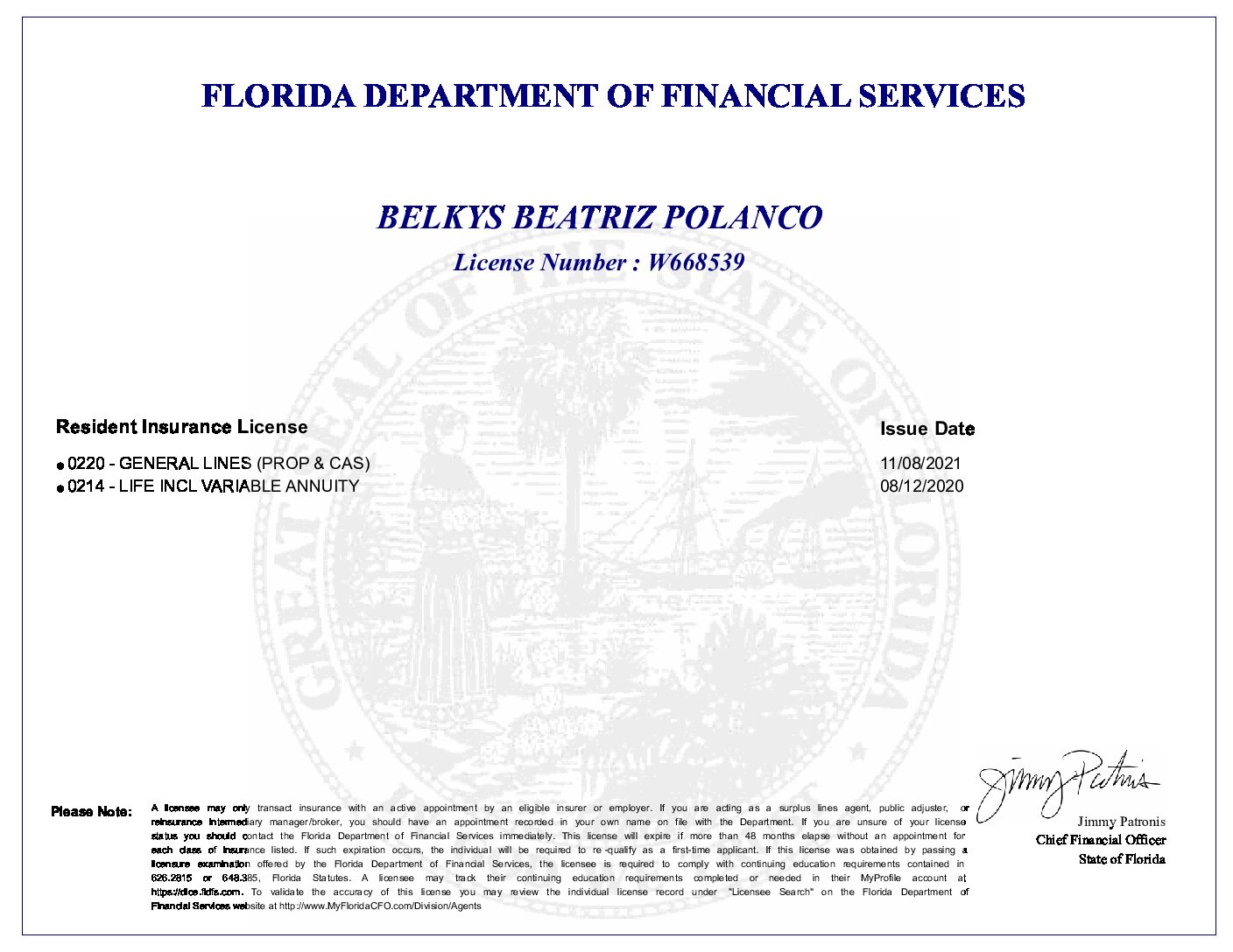 Belkys Polanco is the co-founder of Jax Insurance Agency. With her experience in commercial and personal insurance, she helps clients and enjoys great reputation in the insurance industry. Her clients appreciate her personal assistance and commitment to their needs. Belkys’s passion for her work is matched only by her dedication to her clients. She takes a personal interest and goes above and beyond to ensure they receive the best possible service, tailored to their needs.